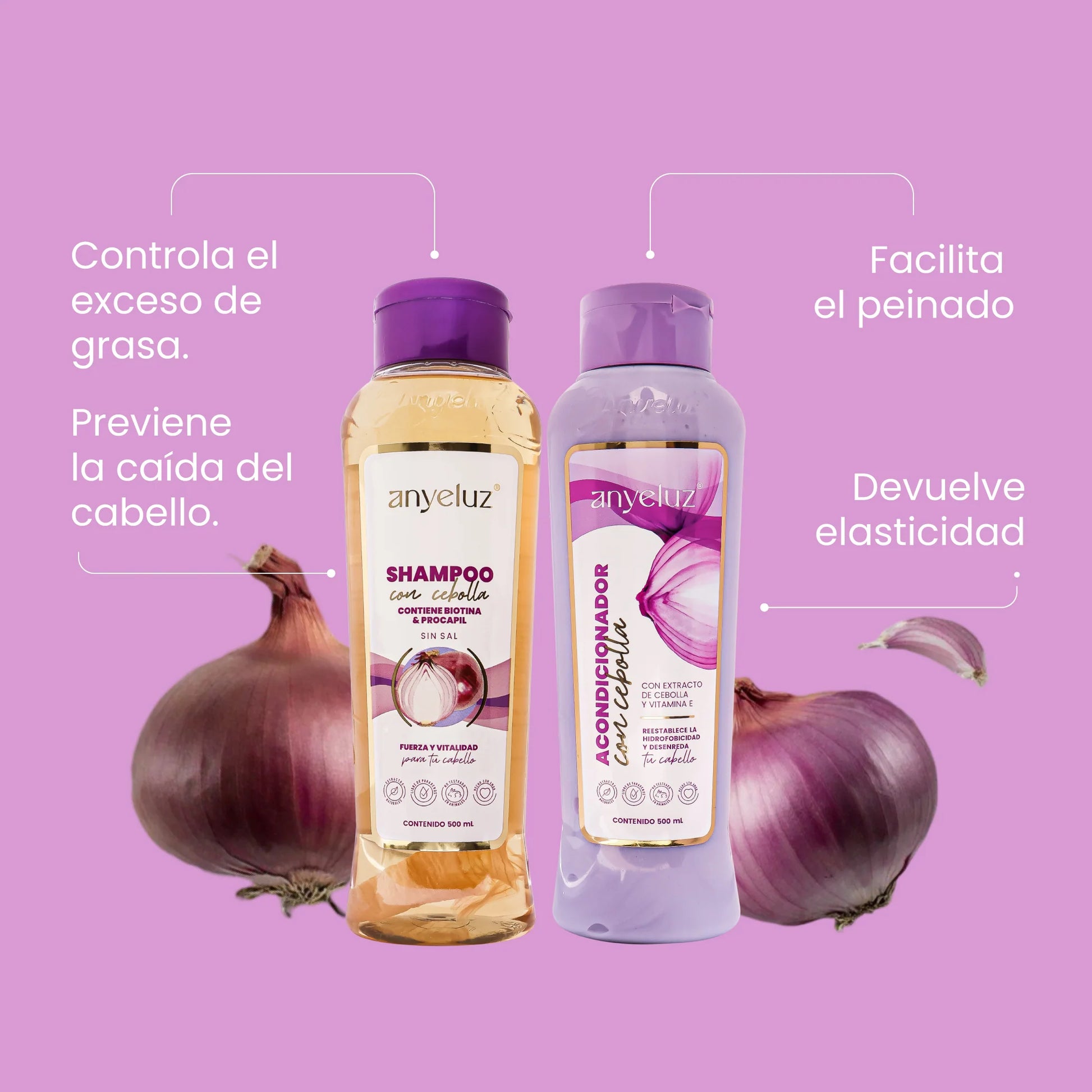 El Acondicionador de cebolla Anyeluz® con extracto de cebolla y Vitamina E, mejora las propiedades del cabello dejándolo sedoso, revitalizado y fácil para peinar. Restablece la hidrofobicidad y desenreda.
